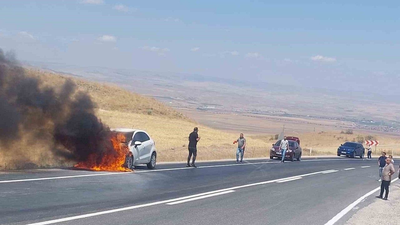 Yozgat’tan Kırşehir istikametine giden araç aniden alev aldı.