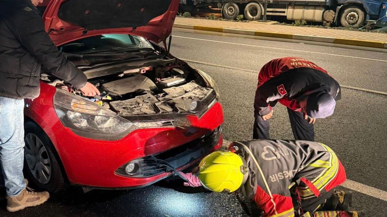 Balıkesir'in Gönen ilçesinde bir aracın motor kısmına giren tilki, ekiplerin yaklaşık yarım saat süren titiz çalışması sonucu bulunduğu yerden sağ olarak çıkarılırken, yaşanan olay çevrede kısa süreli şaşkınlığa neden oldu.