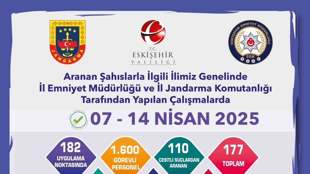 Eskişehir’de polis ve jandarma ekiplerinin çalışmaları sonucunda, farklı yıllardan aranması bulunan 177 şahsın yakalandığı açıklandı.