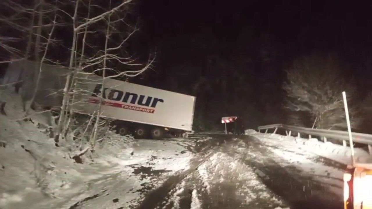 Olay, Sahara Geçidi'nin zirve noktasında meydana geldi. Alınan bilgiye göre, kaygan zemin nedeniyle kontrolden çıkan tır, kayarak yolu trafiğe kapattı. Tırın yolu kapatmasıyla birlikte her iki yönde trafik durma noktasına geldi. Bölgede mahsur kalan Adem Kaya, o anları anlatarak cep telefonuyla kaydetti.