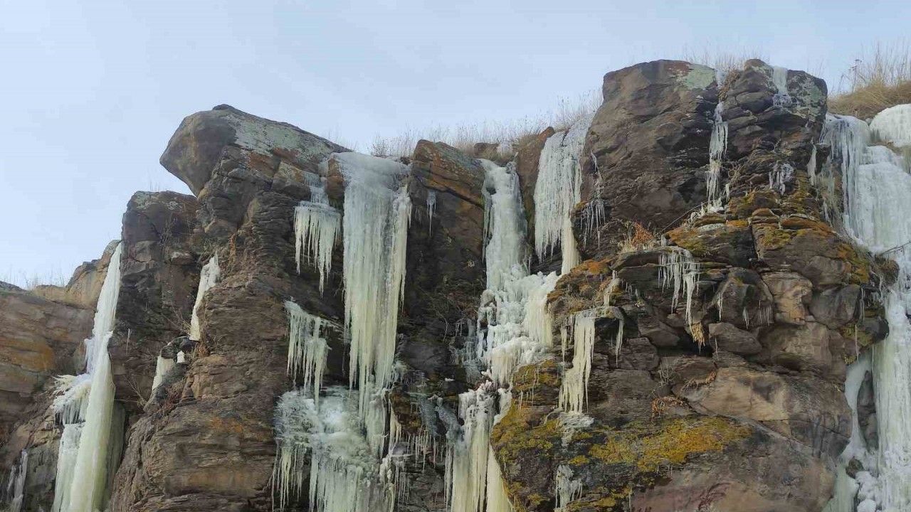 Hava sıcaklıklarının eksi 15,7 derecenin altına düştüğü Ardahan’da kayalardan akan suların oluşturduğu buz sarkıtları görsel şölen sundu.