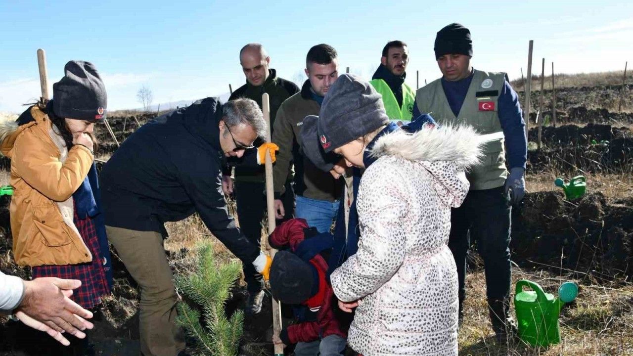 Ardahan’da öğrenciler, "Yeşil Vatan Benim Okulum Geleceğe Çare" projesi kapsamında fidan dikti.