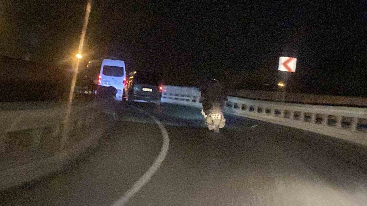 Eskişehir’de karanlıkta arka ışıkları yanmadan seyir eden bir motosikletli hem kendisini hem de trafiği tehlikeye düşürdü.