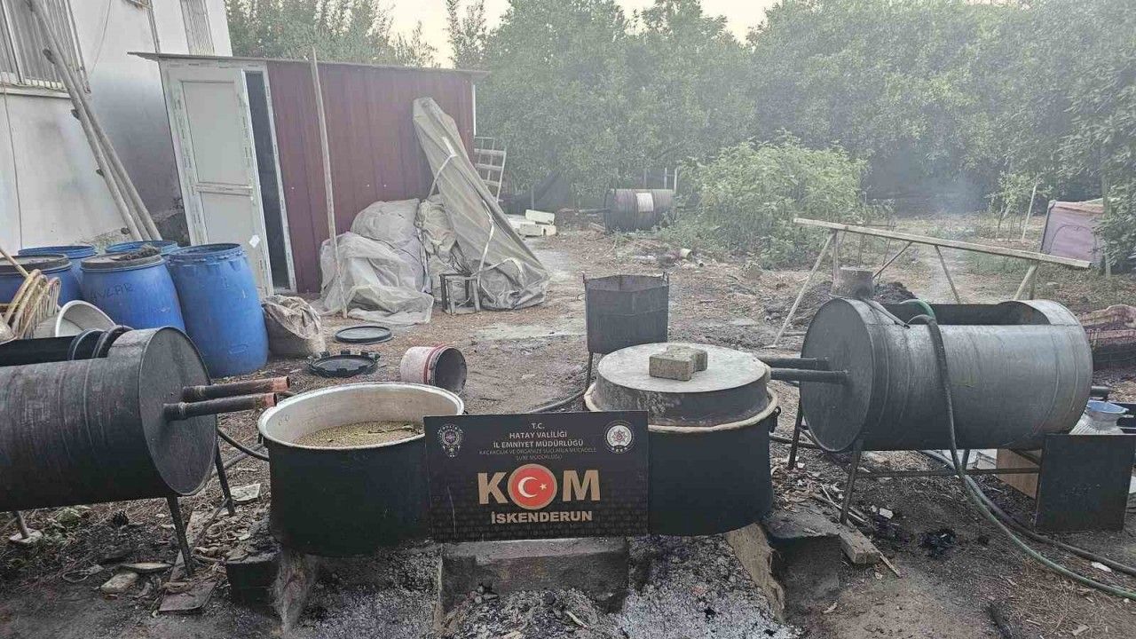 Hatay’ın Arsuz ilçesinde belirlenen 2 adreste yapılan aramada 2 bin 940 litre sahte içki ve yapımında kullanılan malzemeler ele geçirildi.