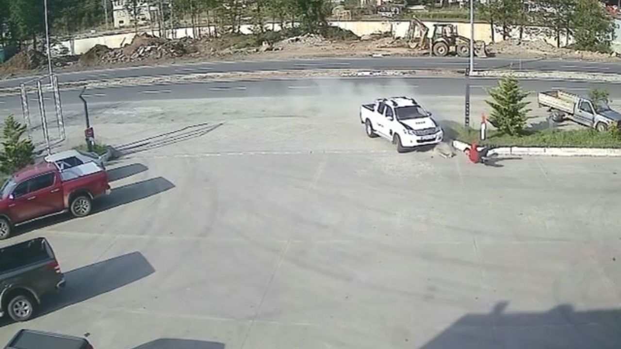Artvin’in Hopa ilçesinde bir akaryakıt istasyonu çalışanı, kontrolden çıkan bir kamyonetin çarpması sonucu yaralandı. Kaza anı güvenlik kamerasına yansıdı.