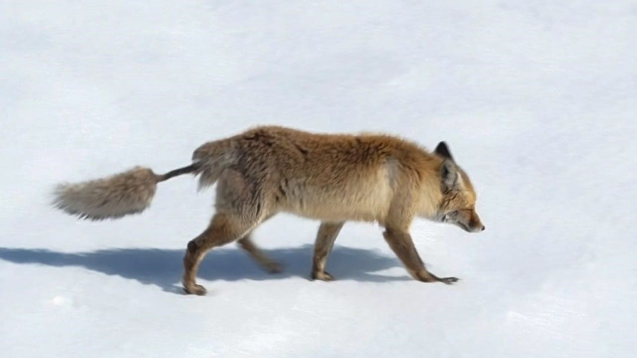 Artvin’in Şavşat ilçesindeki Sahara Geçidi bölgesinde av arayan bir kızıl tilki, havadan görüntülendi. İlginç bir şekilde, tilkinin kuyruğunun bir kısmında tüy bulunmazken, diğer kısmında ise kıvrılarak şekil alan tüyler, görüntüsü ile dikkat çekti.