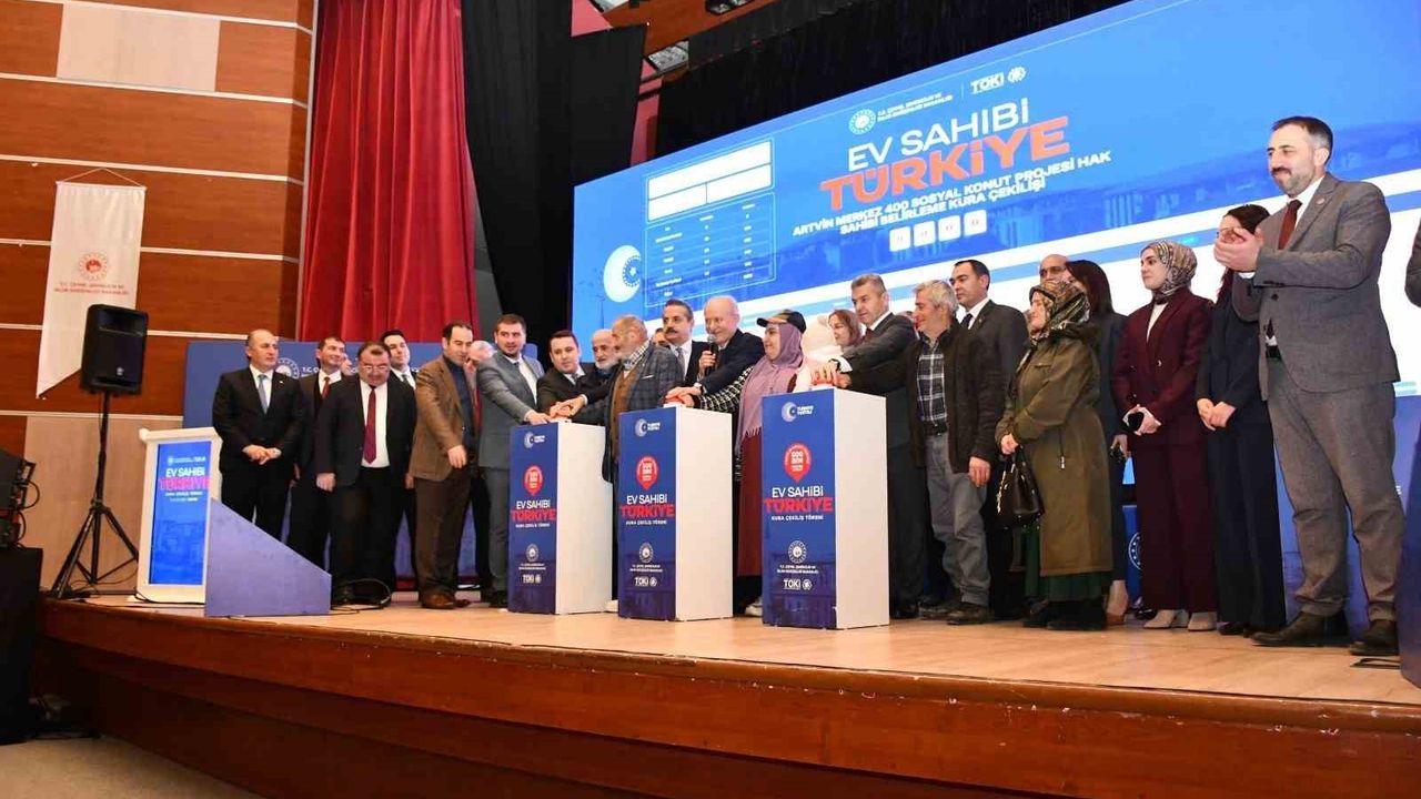Artvin'de TOKİ'nin 500 bin sosyal konut projesi kapsamında yapılacak 1020 konut için hak sahipleri kura ile belirlendi.