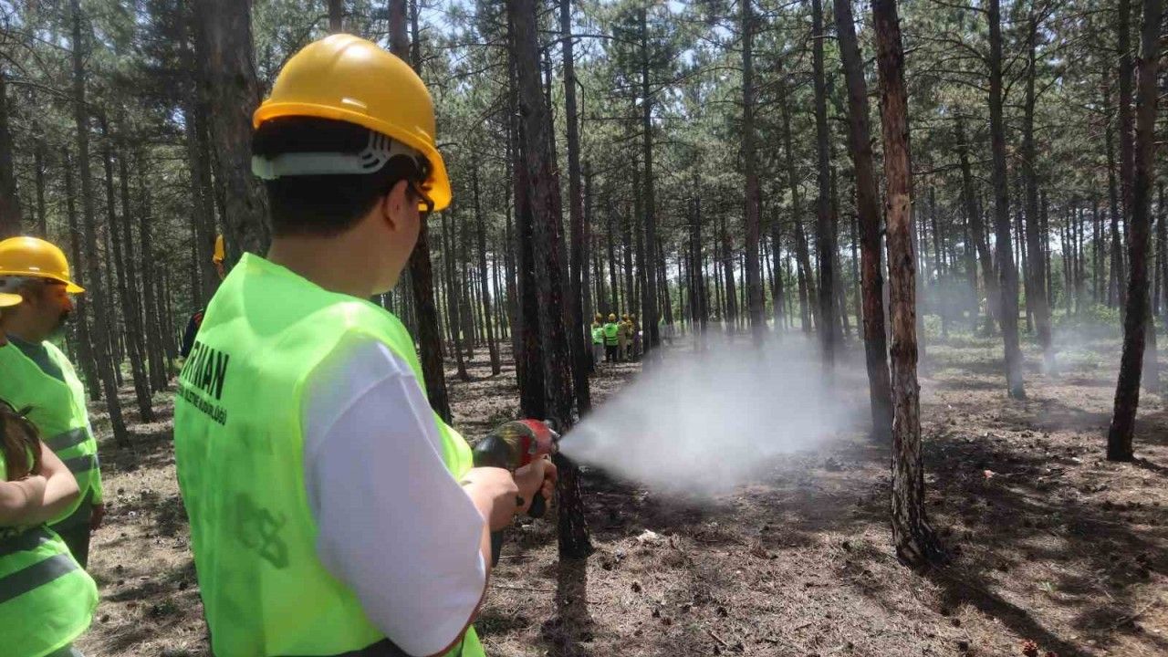 Avrupa Birliği destekli ’İnsan Kaynaklı Orman Yangınları’ proje kapsamında jandarma ve öğrenciler, orman yangınlarına karşı tatbikat yaptı.