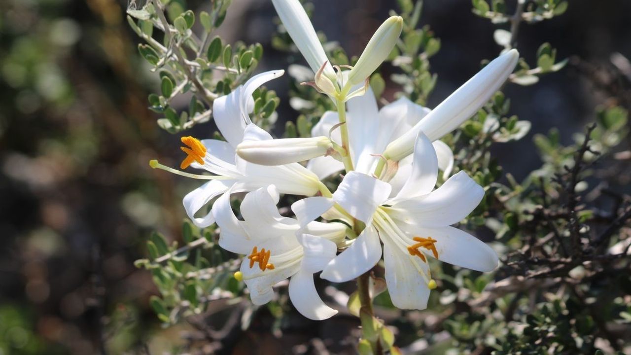 Aydın’ın Kuşadası ilçesindeki dağlarda, halk arasında Bardakcılı olarak bilinen ve koruma altına alınan Lilium Candidum türü akzambaklar çiçeklerini açmaya başladı.