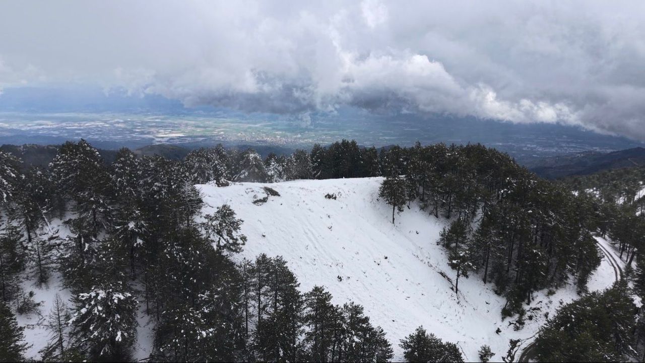 Aydın'ın Efeler ilçesinde bulunan Paşa Yaylası, Mart ayında yağan karla birlikte adeta kış manzarasına döndü.