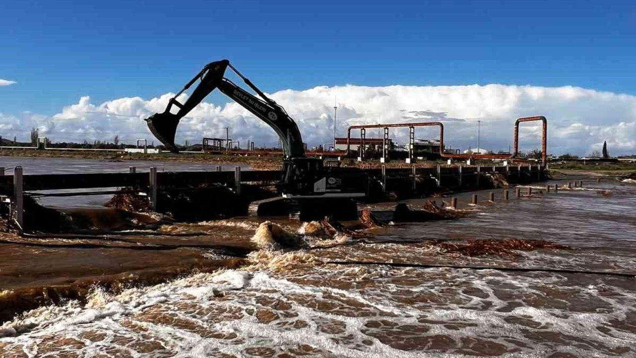 Çanakkale'nin Ayvacık ilçesinde etkili olan şiddetli sağanak yağış nedeniyle taşan Tuzla Çayında çalışmalar devam ediyor.
