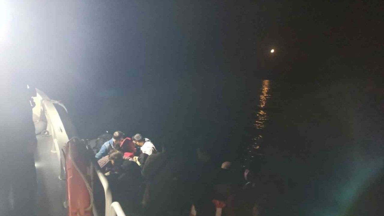 Hemen harekete geçen KB-11 isimli sahil güvenlik botu, Ayvalık açıklarından Midilli Adası’na doğru hareket halindeki lastik botu durdurarak içindekileri ele geçirdi.