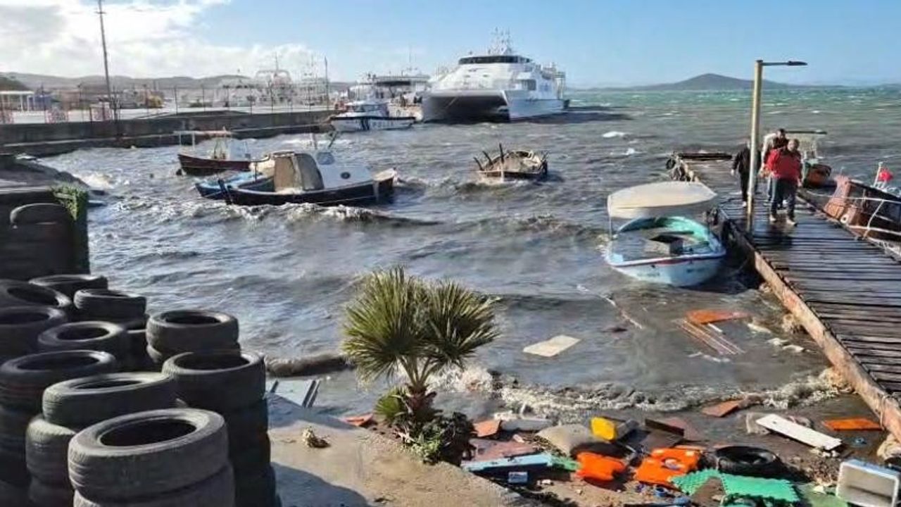 Balıkesir'in Ayvalık ilçesinde şiddetli lodos hayatı denizdeki tekneleri parçaladı..