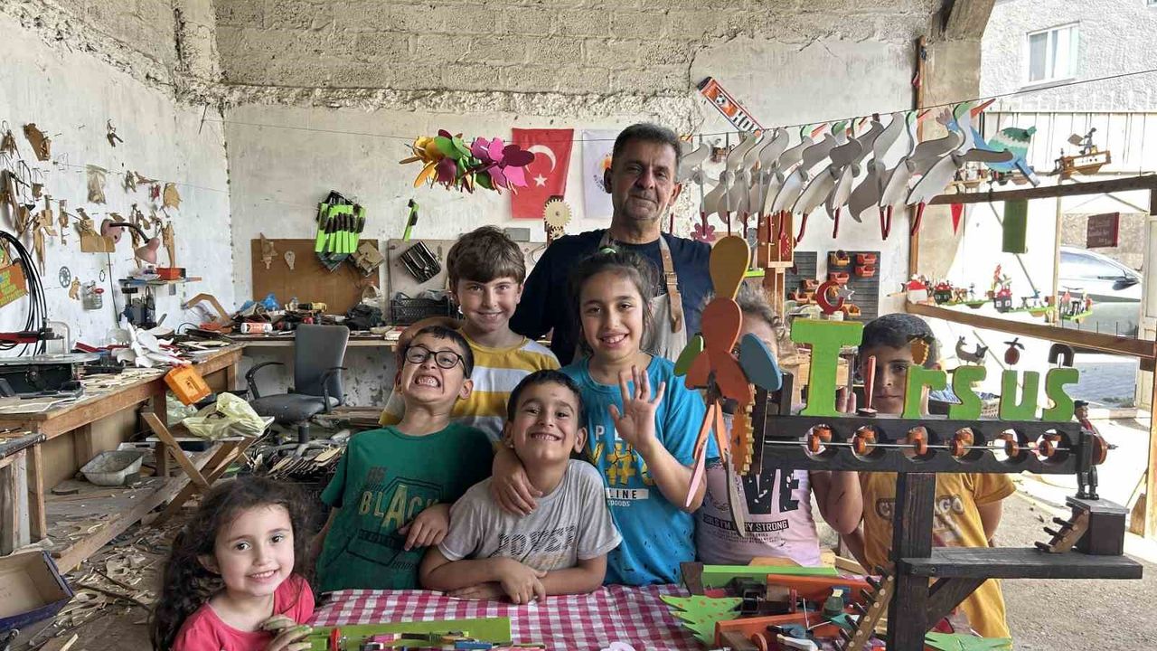 Mersin’in Tarsus ilçesinde baba ile oğlu ahşabı oyuncağa dönüştürerek, hem zararsız ürünler üretiyor hem de hayallerini gerçekleştiriyor.