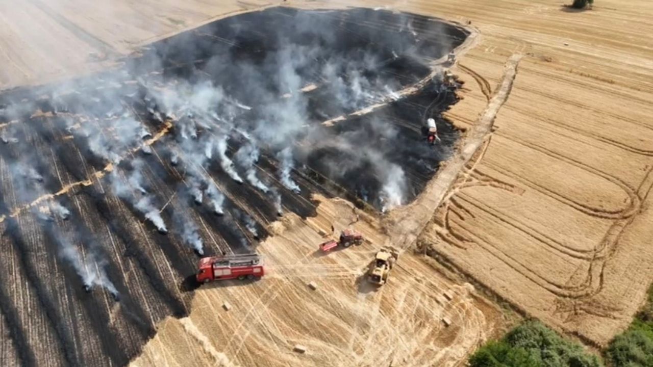 Yangında, bir kısmı anız olmak üzere hasadı henüz yapılmamış ve hasat sonrası saman balyalarının hazırlandığı 100 dekar alan zarar gördü. Yangınla ilgili inceleme başlatıldı.