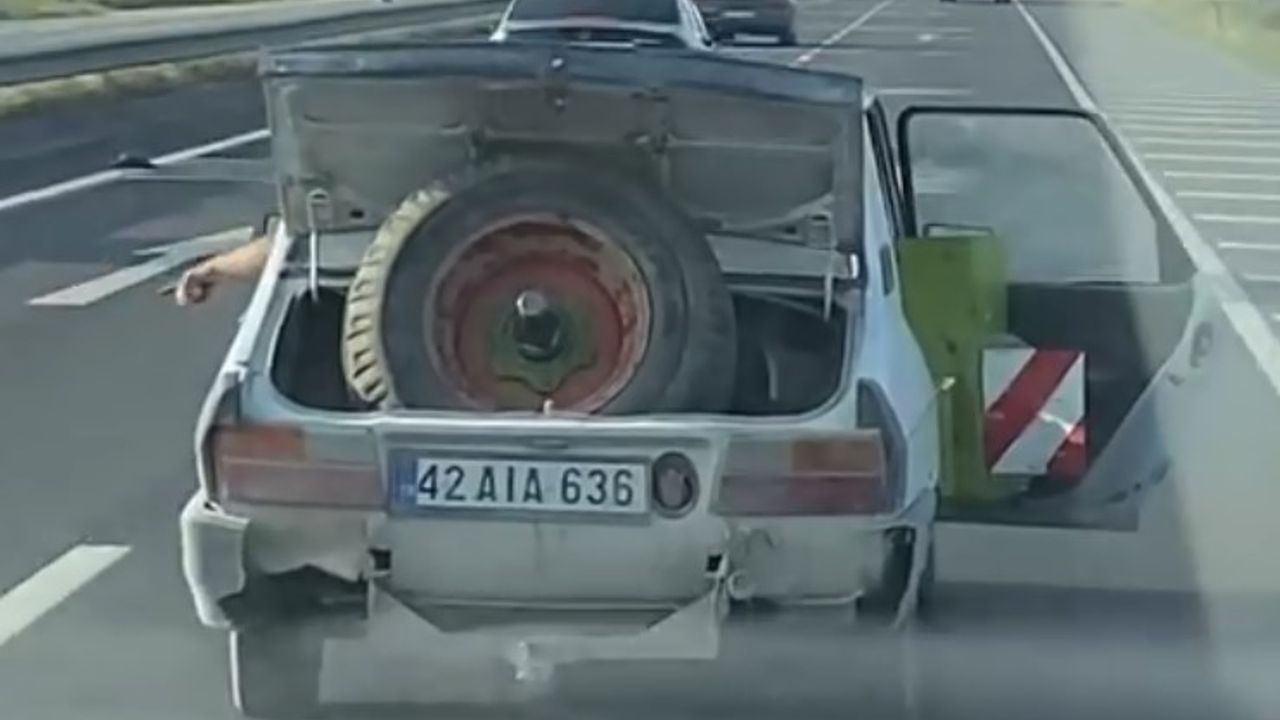 Edinilen bilgiye göre, yüklediği malzemeleri aracına sığdıramayan sürücü bagaj kapısı ve sağ arka kapısı açık vaziyette Aksaray Adana Kara yolunda trafiğe çıktı. Kara yolunda Aksaray istikametine seyreden otomobil bir vatandaşın cep telefonu kamerasına yansıdı. Araç sürücüsünün sol şeride geçmek için kolunu camdan uzatarak eliyle solu işaret etmesi de dikkat çekti. Kara yolundaki o tehlikeli anlar bir başka araçta bulunan yolcu tarafından cep telefonu kamerasıyla görüntülendi. Görüntülerde, seyir halindeki aracın bagaj ve sağ arka kapısı açık seyretmesi, sürücünün ise eliyle sinyal işareti vermesi görülüyor. Görüntüler üzerine harekete geçen Aksaray İl Emniyet Müdürlüğü Trafik Tescil ve Denetleme Şubesi ekipleri araç sürücüsünü belirleyerek S.H. isimli sürücünün ehliyetine 2 ay süreyle el koydu. Ayrıca sürücüye kara yolları trafiğini tehlikeye düşürmekten 4 bin 239 lira para cezası kesildi.