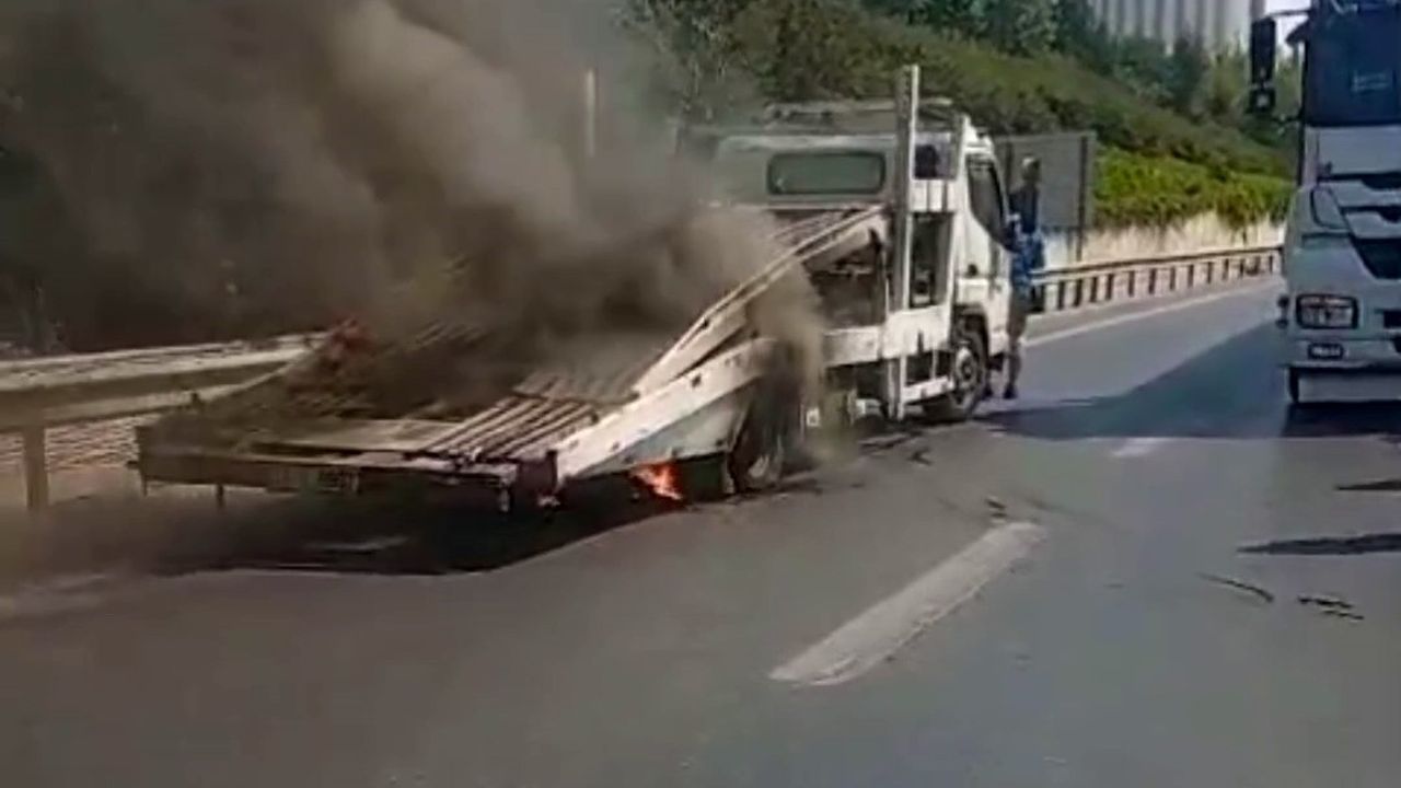Bağcılar TEM Otoyolu’nda seyir halindeki çekicinin arka kısmında bilinmeyen bir nedenle yangın çıktı. Kısa sürede büyüyen alevler, diğer sürücülerin yangın tüpleriyle müdahalesi sonucunda yan taraftaki ağaçlık alana sıçramadan söndürüldü.
