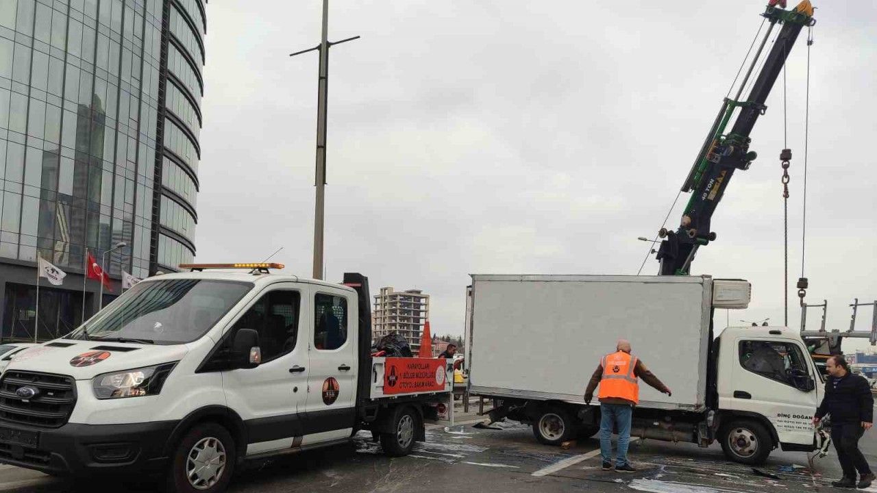 Kaza, Bağcılar Basın Ekspres Karayolu TEM istikametinde meydana geldi. Edinilen bilgiye göre, Ahmet Arslan yönetimindeki 34 PJ 5732 plakalı bir gıda firmasına ait kamyonet seyir halindeyken kontrolden çıkarak refüje çarptı. Ardından savrularak yan yattı. Kamyonet içerisinde bulunan süt ve süt ürünleri yola saçıldı. Kazayı gören vatandaşların ihbarı üzerine olay yerine polis ekipleri sevk edildi. Tüm şeritlerin kapandığı yolda trafik polis ekipleri tarafından kontrollü olarak yan yoldan sağlandı. Araçtan kendi imkanlarıyla çıkan sürücü ise kazayı burnu bile kanamadan atlattı. Kamyonette büyük çaplı hasar oluştu.