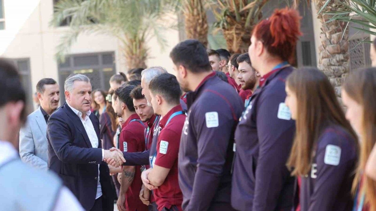 Milli sporcularla sohbet ederek durumları hakkında bilgi alan Bakan Bak, ay-yıldızlılara 6. İslami Dayanışma Oyunları’nda başarılar diledi.