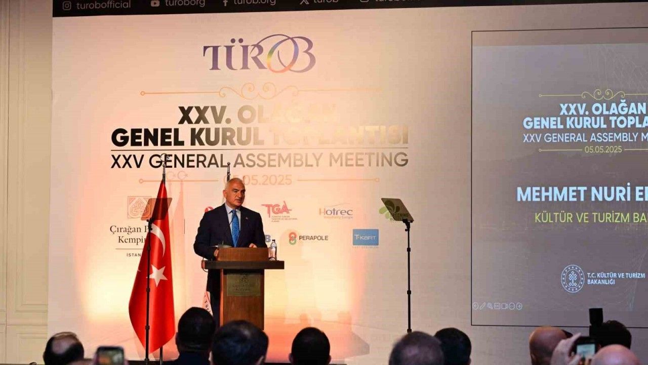 Kültür ve Turizm Bakanı Mehmet Nuri Ersoy, Türkiye Otelciler Birliği’nin (TÜROB) 25’inci Olağan Genel Kurul Toplantısı’na katıldı. Bakan Ersoy, burada yaptığı konuşmada mevcut turizm verilerini değerlendirirken, dijital tanıtım alanında çalışmalarını sürdürdüklerini söyledi. Türkiye’yi küresel ölçekte cazibe merkezi haline getirmek istediklerinin altını çizen Ersoy, turizmi 81 ile ve 12 yılın 12 ayına yaymak istediklerini belirtti.
