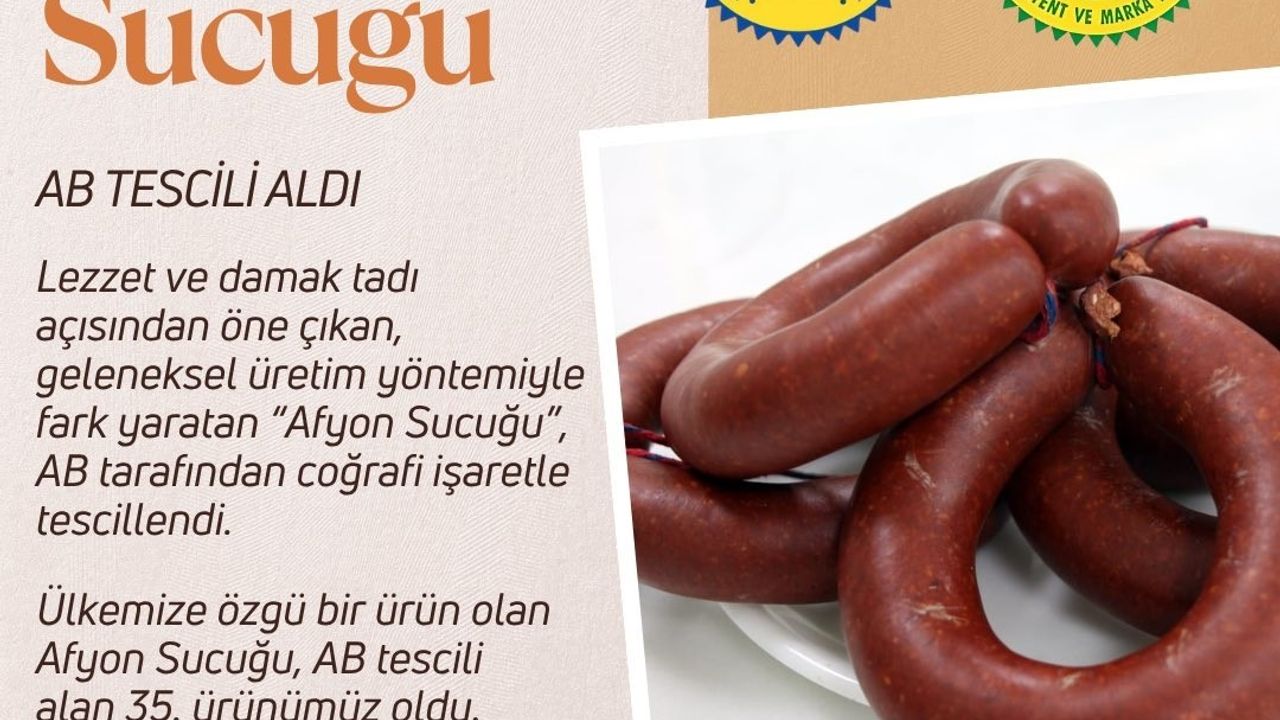 "Afyonkarahisar’dan AB’ye lezzetli bir imza daha. Afyon pastırmasından sonra şimdi de Afyon sucuğu, Avrupa Birliği’nden coğrafi işaret tescili alarak 35. tescilli ürünümüz oldu. Üreticimize ve emeği geçen herkese teşekkür ediyor, bu gururu hep birlikte paylaşıyoruz."