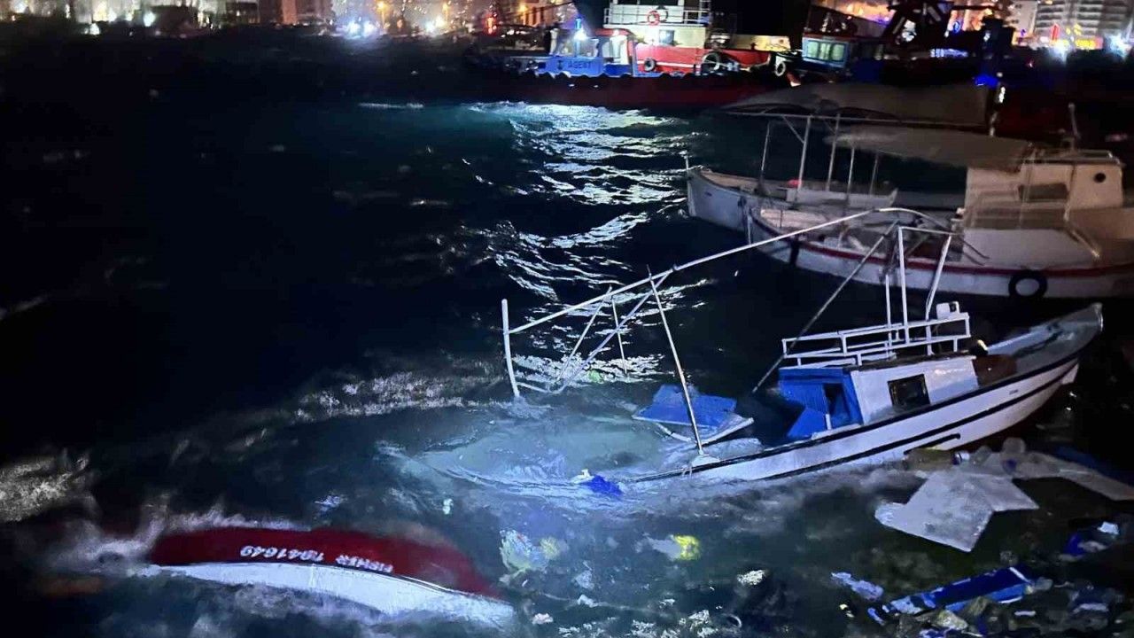 Meteorolojinin kuvvetli fırtına uyarısı Hatay’da akşam saatlerinde yoğun rüzgar etkisini hissettirdi. İskenderun ilçesinde fırtına hayatı olumsuz etkilerken balıkçı barınağında bulunan 3 tekne fırtınanın etkisiyle battı. Dev dalgalardan teknelerini kurtarmak isteyen balıkçılar zor anlar yaşadı. Balıkçı Fatih Deriali, batan teknesini çekiciyle bağlayarak kurtarmaya çalıştı. Fırtınanın etkisini sabah saatlerine kadar hissetmesi bekleniyor.
