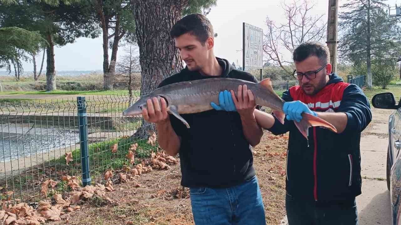 Mersin balığını teslim alan yetkililer, Edirne İl Tarım ve Orman Müdürlüğü’nün İpsala Su Ürünleri Üretim İstasyonu’na götürdü