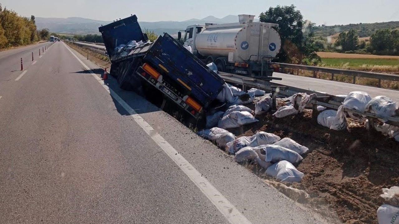 Balıkesir’in Susurluk ilçesi Demirkapı mevkiinde meydana gelen trafik kazasında, sürücüsünün direksiyon hakimiyetini kaybettiği tır orta refüje çarparak durabildi. Kazada yaralanan olmazken, tırda yüklü malzemeler yola savruldu. Olay nedeniyle trafik akışı bir süre kontrollü sağlandı.