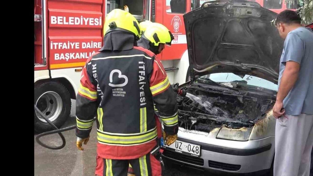 Balıkesir’in Karesi ilçesinde park halindeki bir otomobilde yangın çıktı.