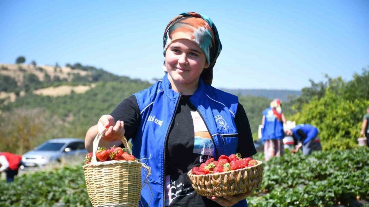 Balıkesir’de gençler, ’Gönüllü Hasat’ etkinliğinde çiftçilere yardımcı olarak tarımın farklı aşamalarını öğrenip çilek hasadını deneyimledi.