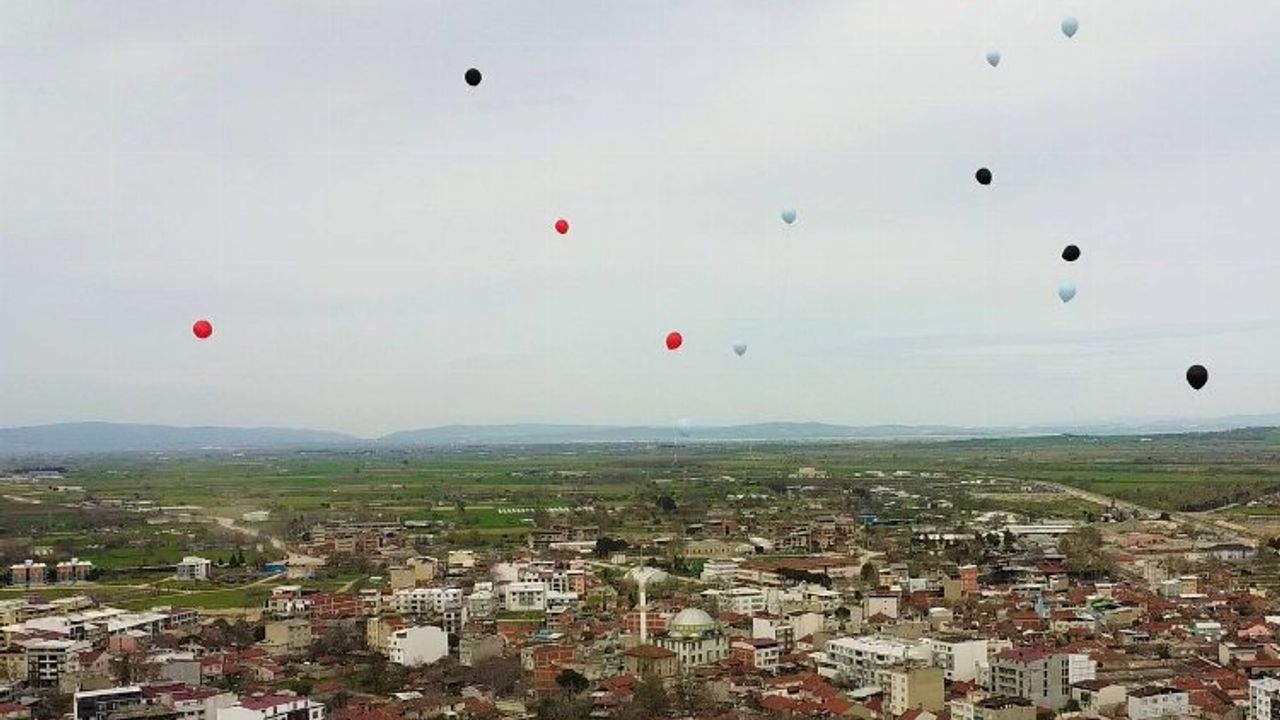 Mustafakemalpaşa'da 2 Nisan Otizm Farkındalık Günü kutlamalarında deprem bölgesindeki otizmli bireylere dikkat çekmek adına mavi, kırmızı, siyah balonlar gökyüzünde görsel bir şölen oluşturdu.