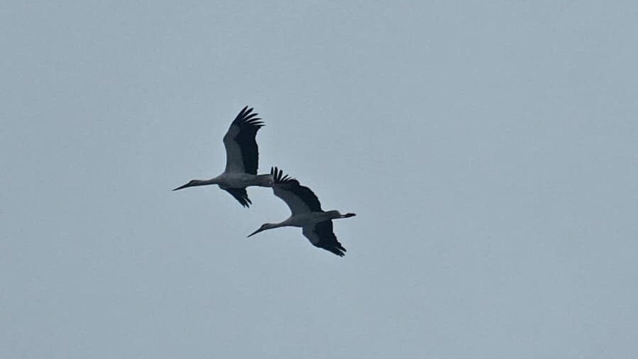 Balıkesir'in Bandırma ilçesinde, baharın müjdeleyicisi olarak bilinen leylekler gökyüzünde süzülürken görüntülendi. Mart ayı içerisinde hava sıcaklıklarının 9 derece seviyelerinde seyretmesiyle birlikte bölgede soğuk hava etkisini sürdürürken, leyleklerin gelişi baharın yaklaştığının işareti oldu.