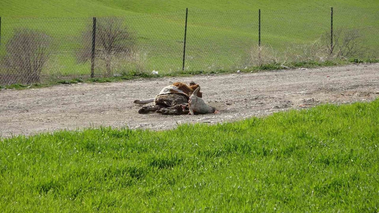 Adıyaman'da Atatürk Barajı içerisine, yol ortasına ve kenarlarına atılan çok sayıda büyükbaş hayvan leşi pes dedirtiyor.