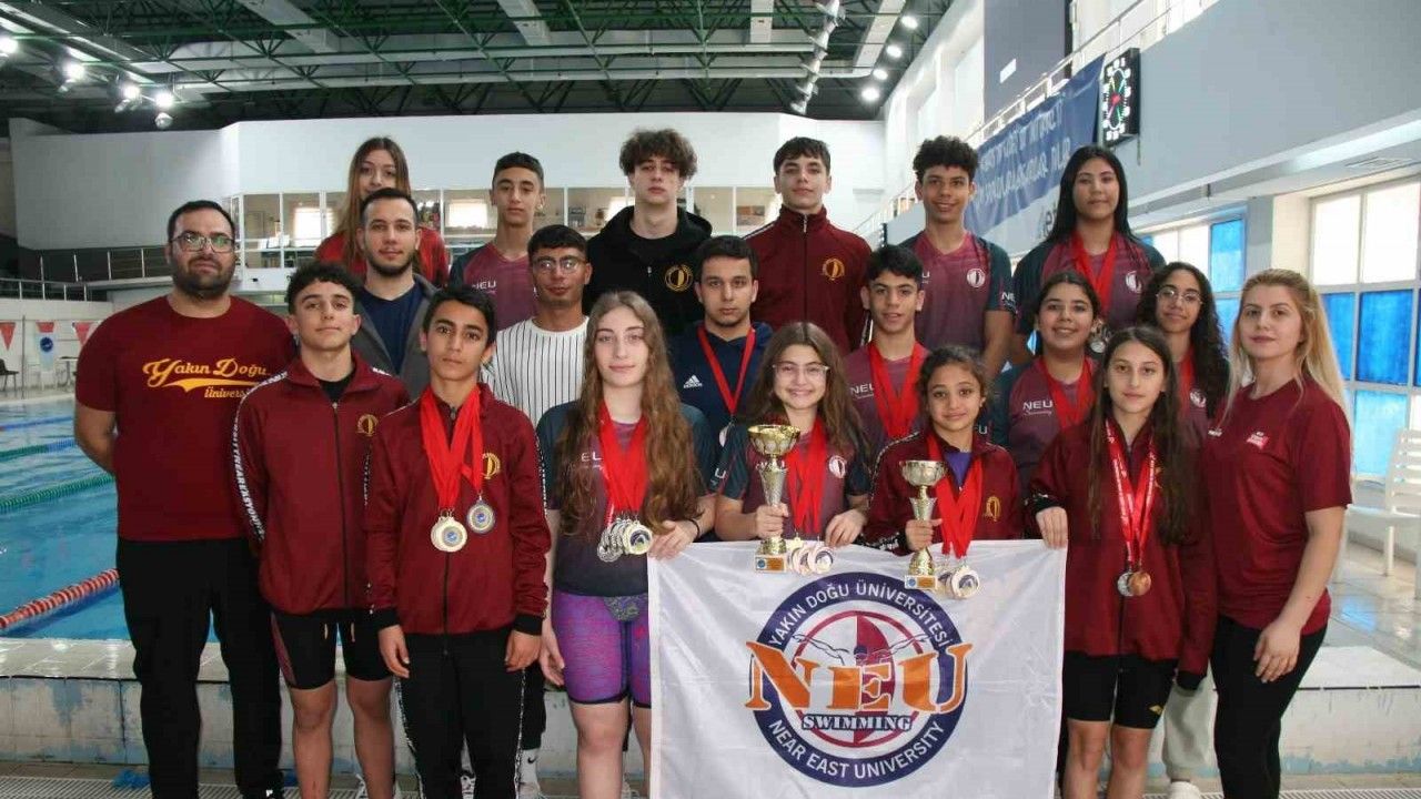 Yakın Doğu Üniversitesi Spor Kulübü sporcuları, Kulüpler Arası Yüzme Şampiyonası’nda 27’si altın 54 madalya ile büyük başarı kazanırken Türkiye Yüzme Federasyonu (TYF) yaş grubu ve milli takım barajlarını da geçti.