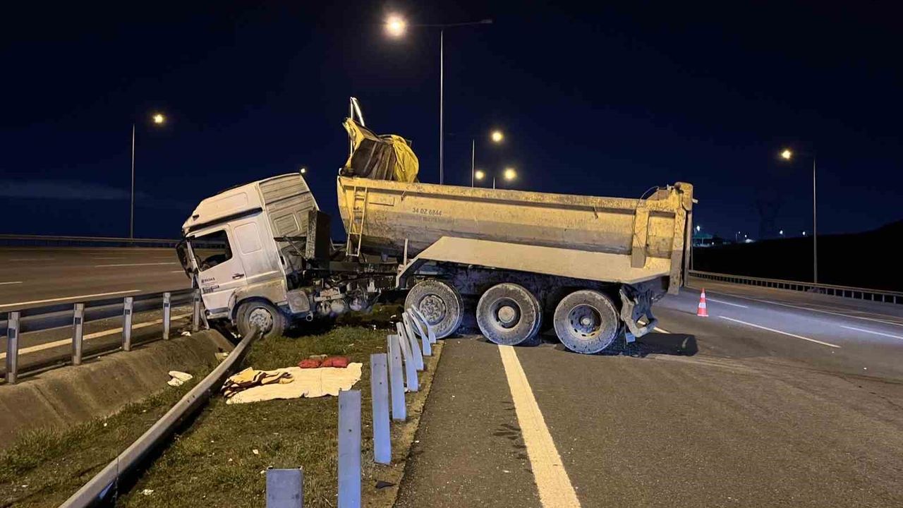 Kaza, akşam saatlerinde Kuzey Marmara Otoyolu Başakşehir Mevkii'nde meydana geldi. İddiaya göre B.T. kontrolündeki 34 DZ 6844 plakalı hafriyat kamyonunun dorsesi yol üzerindeki serbest geçiş sistemi (SGS) direğine vurdu. Kaza nedeniyle direksiyon hakimiyetini kaybeden sürücü, yolun sol şeridine geçerek bariyere girdi. İhbar üzerine olay yerine itfaiye, polis ve sağlık ekipleri sevk edildi. Araç sürücüsü, sağlık ekiplerinin ilk müdahalesinin ardından ambulansla hastaneye kaldırıldı. Sürücünün durumunun ağır olduğu öğrenilirken polis ekipleri tarafından yolda güvenlik önlemleri alındı. Hafriyat kamyonu yoldan kaldırılarak götürüldü.