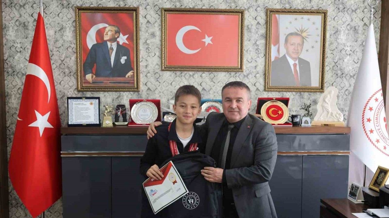 Sporcuya başarılarının devamını dileyen Demir, genç yeteneklerin teşvik edilmesi ve desteklenmesi gerektiğini vurguladı.
