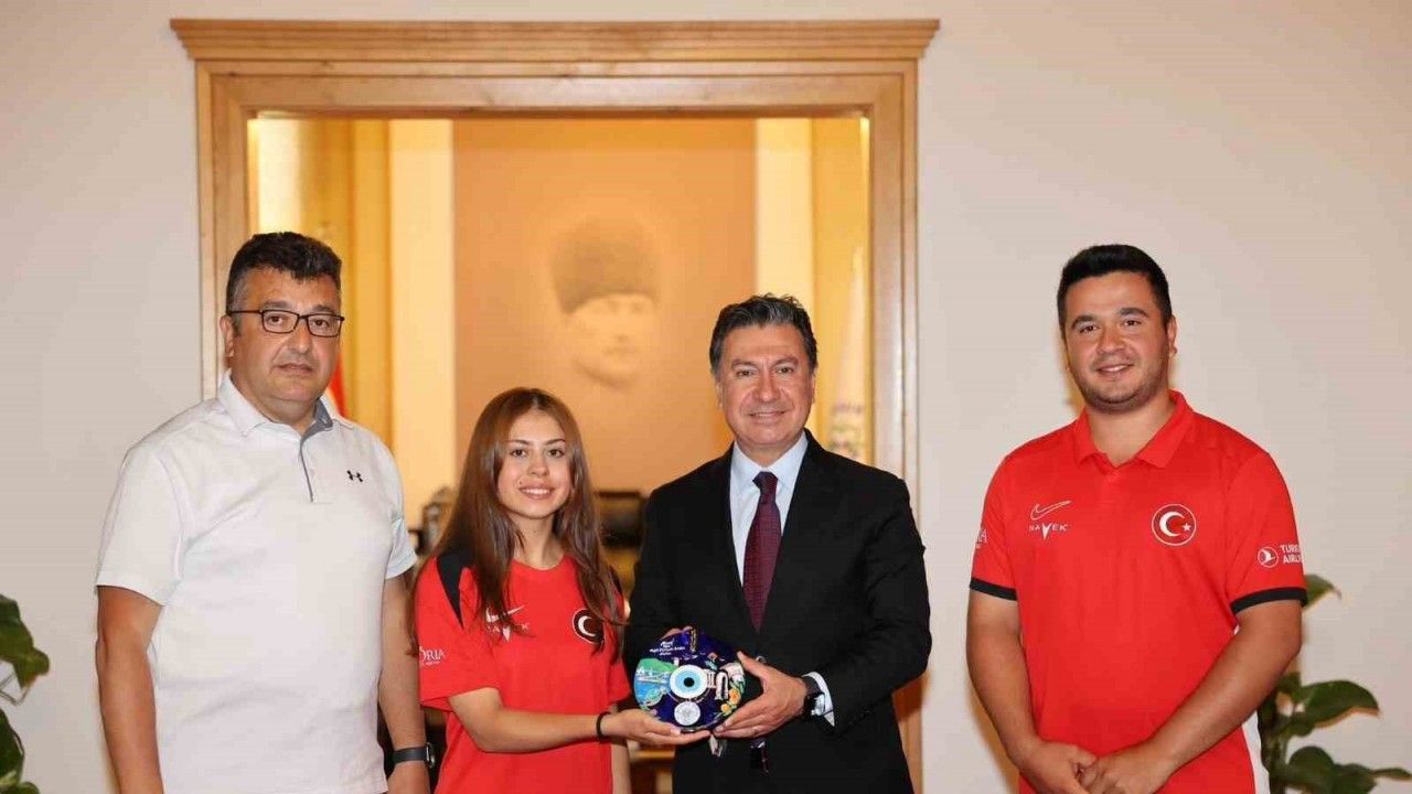 Muğla Büyükşehir Belediyesi Spor Kulübü’nün milli okçuları Hazal Burun ve Emircan Haney ile antrenörleri Dr. Ejder Sözen, elde ettikleri ulusal ve uluslararası başarıların ardından Büyükşehir Belediye Başkanı Ahmet Aras’ı makamında ziyaret etti.
