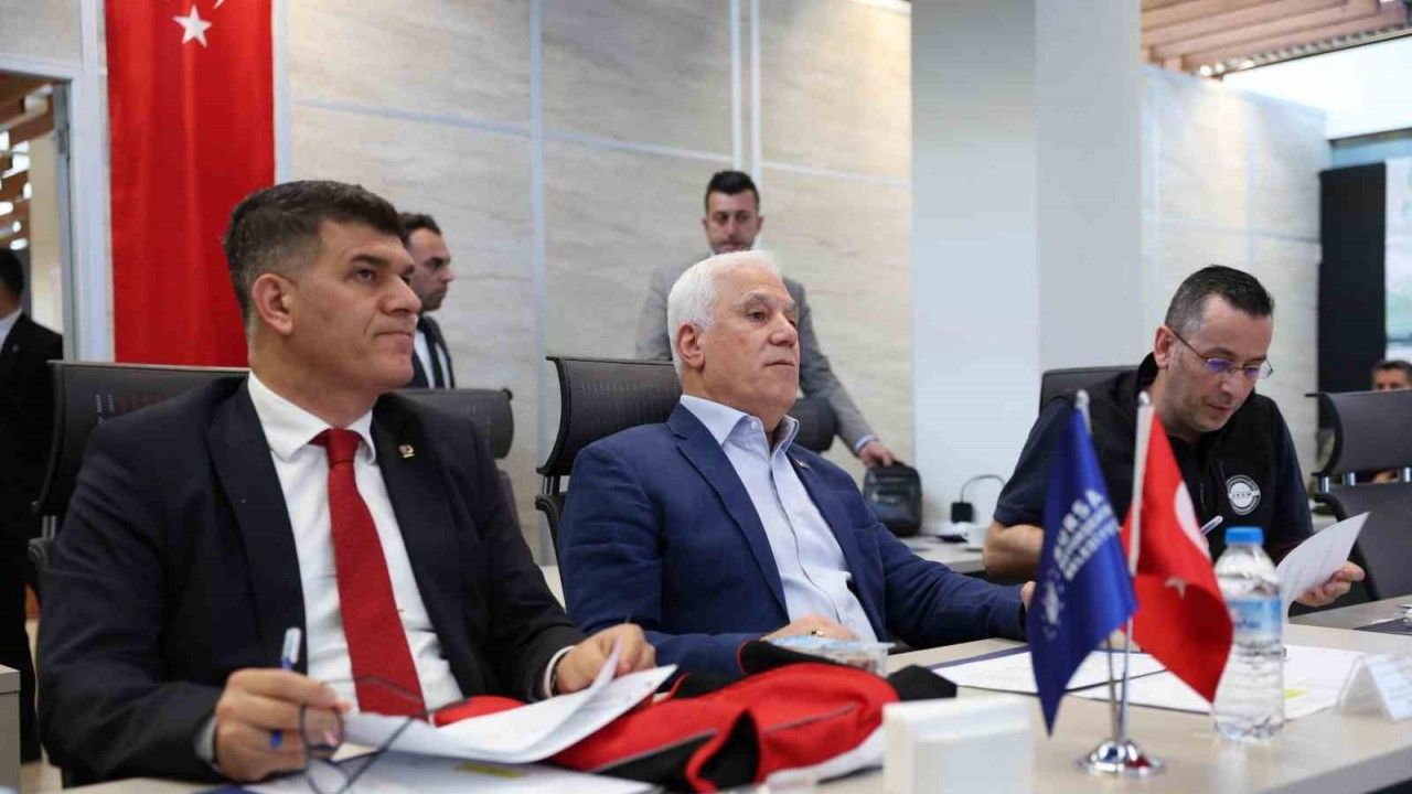 Bursa Büyükşehir Belediye Başkanı Mustafa Bozbey, BURULAŞ ile Demiryol-İş Sendikası arasında devam eden toplu iş sözleşmesi görüşmeleriyle ilgili açıklamalarda bulundu. AKOM Merkezi’ndeki basın açıklamasına, Büyükşehir Belediyesi Genel Sekreteri Doç. Dr. Ergül Halisçelik, genel sekreter yardımcıları, daire başkanları, şirketlerin yöneticileri ve şube müdürleri katıldı.