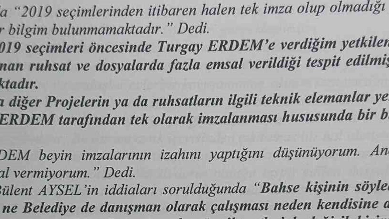 Nilüfer Belediyesi'nde Başkan Bozbey'in yardımcısı olarak görev yapan Turgay Erdem, tek imza ile alınan iskan ve yapı ruhsatlarında bir usulsüzlük varsa, 'Gözümden kaçmıştır. Mesuliyetini üstlenirim' savunmasını yaptı.