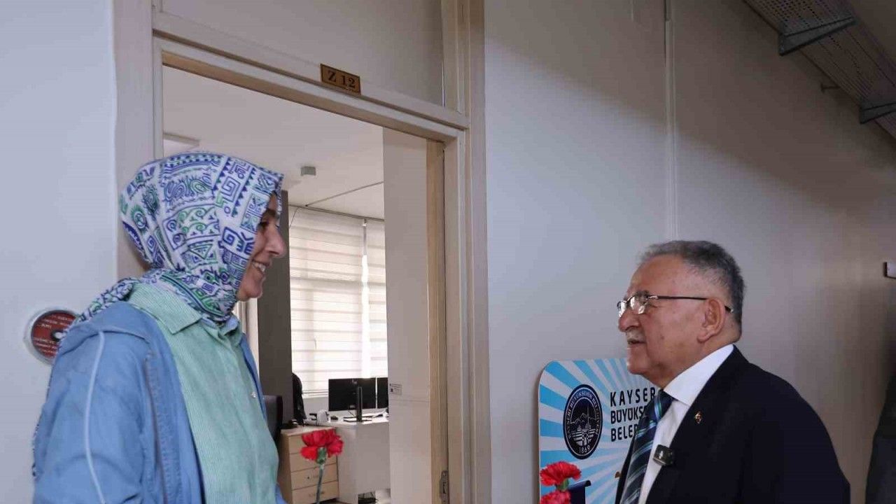 Kadın personellerin çalıştıkları birimleri tek tek ziyaret ederek gönüllerine dokunan Başkan Büyükkılıç, "Biz sizleri seviyoruz, sağ olun. Hep beraber hizmet ediyoruz şehrimize. Dünya Kadınlar Günü diye bir 8 Mart gerçeği var. Gönlünüze dokunacak, ufak da olsa, böyle çalışmalar yapıyoruz" diye konuştu.
