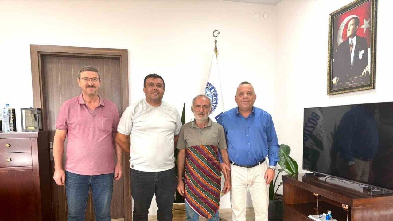 Bozdoğan’da yılın ahisi seçilen esnaf Erkan Derban, Esnaf ve Sanatkarlar Oda Başkanı Deniz Çiftçioğlu ile birlikte Bozdoğan Belediye Başkanı Mustafa Galip Özel’i makamında ziyaret etti.