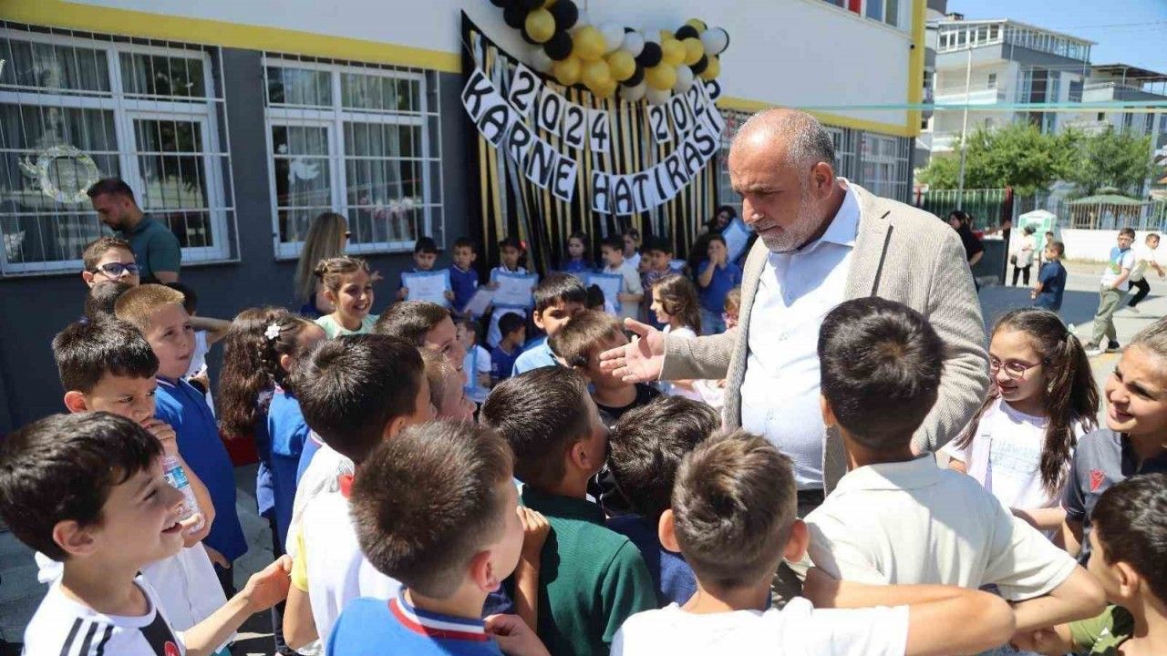 Samsun’un Canik Belediye Başkanı İbrahim Sandıkçı, Hasköy Cumhuriyet İlkokulu’nda karne sevinci yaşayan öğrencilerin mutluluğuna ortak oldu. Öğrenciler, karnelerini Başkan Sandıkçı’nın elinden alırken duygu dolu anlar yaşandı.