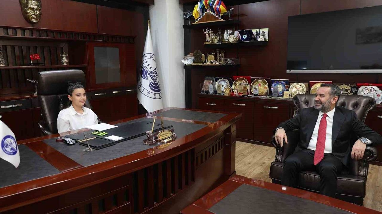 Elazığ Belediye Başkanı Şahin Şerifoğulları, 23 Nisan Ulusal Egemenlik ve Çocuk Bayramı etkinlikleri kapsamında koltuğunu, 4. sınıf öğrencisi Zehra Betül Duzcu'ya devretti.
