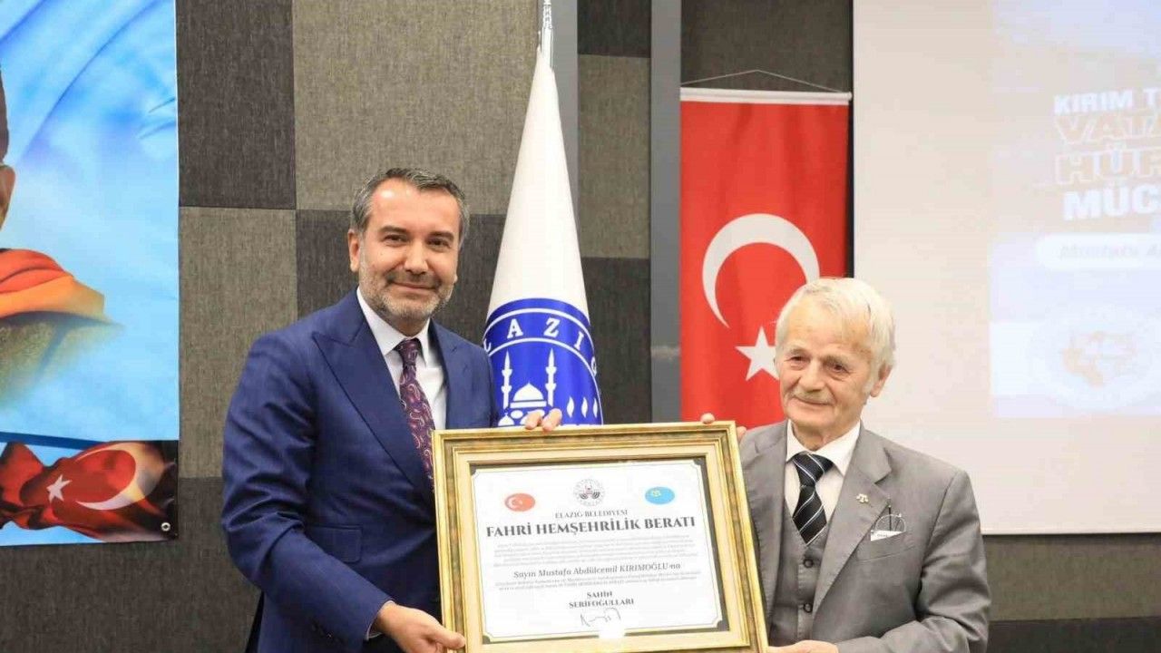 Elazığ Belediye Başkanı Şahin Şerifoğulları tarafından, Kırım Tatar Türklerinin milli lideri ve Ukrayna Milletvekili Mustafa Abdülcemil Kırımoğlu’na "fahri hemşehrilik beratı" takdim edildi.