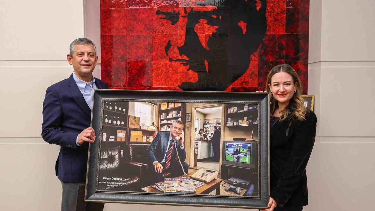 CHP Genel Başkanı Özgür Özel'i ziyaret eden Büyükşehir Belediyesi Başkanı Vekili Büşra Özdemir, Büyükşehir Belediyesi'nin Antalya'ya kazandırdığı hizmetler ve devam eden projeler hakkında bilgi verdi. Muhittin Böcek'in emeği ve mücadelesine vurgu yapan Başkan Vekili Büşra Özdemir, ziyaret anısına Özgür Özel'e bir tablo hediye etti. Başkan Vekili Özdemir, CHP lideri Özgür Özel'in siyasi kariyerinin başlangıcı ve eczacılık günlerini temsil eden bir fotoğraf görselinin güncel halini ifade eden tablo ile ilgili şu mesajı paylaştı: 'Çünkü; o gün yarım kalan maç ile başlayan hikâye, bugün milletin iradesiyle tamamlanmaya devam ediyor.'