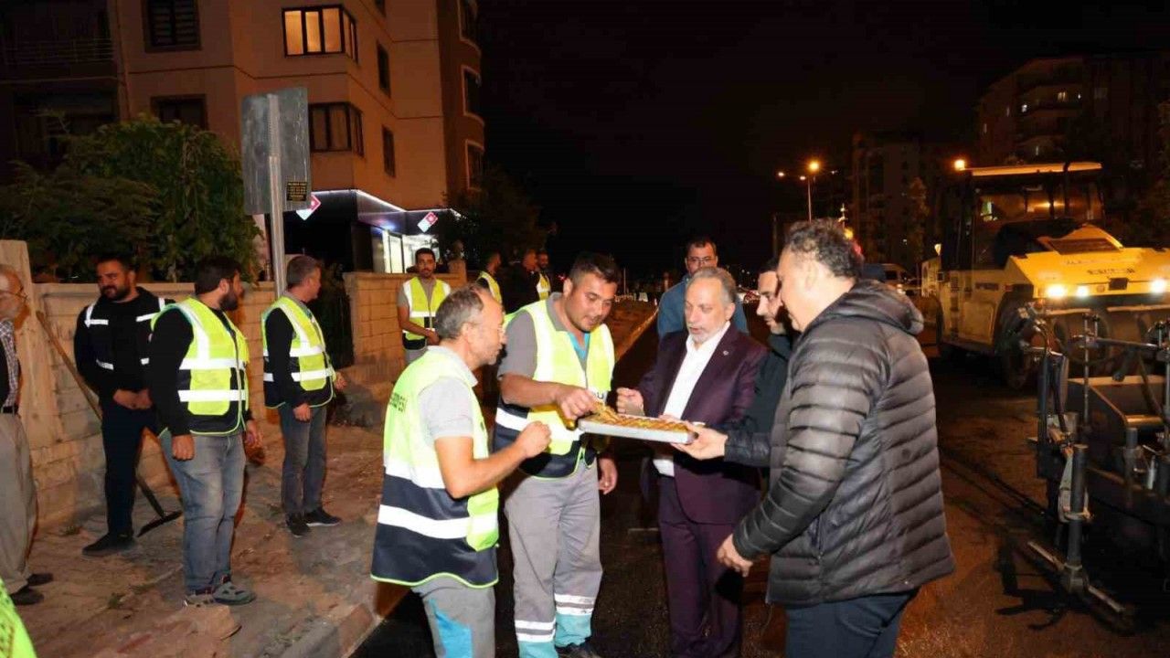 Gece boyunca süren sıcak asfalt uygulamasını teknik ekiplerle birlikte takip eden Başkan Yalçın, işçilerle sohbet edip baklava ikramında bulundu. Hizmetin en verimli ve en az trafik aksamasıyla yürütülmesi adına çalışmaların gece yapıldığını belirten Başkan Yalçın, "Vatandaşlarımızın konforlu bir ulaşım sağlaması için gece gündüz demeden sahadayız. Bizler için belediyecilik sadece gündüz mesaisiyle sınırlı değil. Hemşehrilerimizin rahatı her şeyden önemli" dedi.