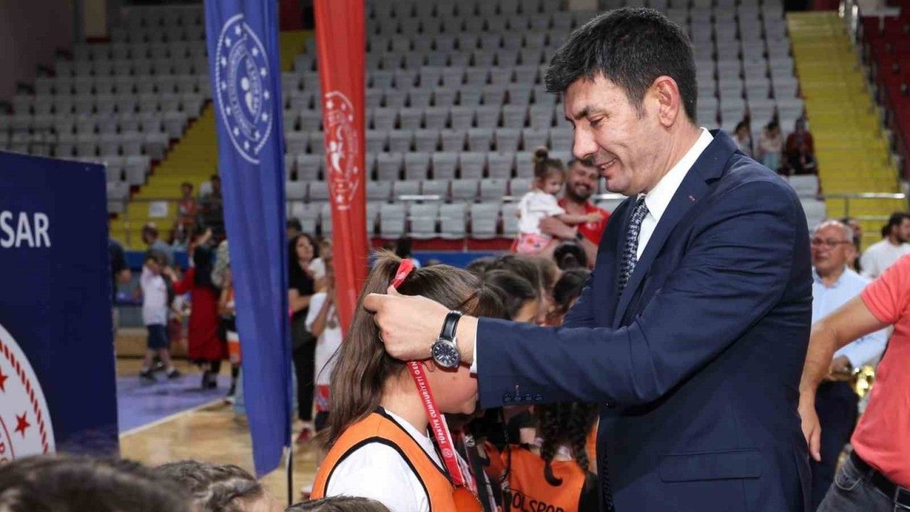 Prof. Dr. Veysel Eroğlu Spor Salonunda düzenlenen U10, U11 ve U12 Basketbol Kulüp müsabakaları tamamlandı. Dereceye giren takımlara kupa ve madalyaları; Vali Yardımcısı İhsan Ayrancı, Gençlik ve Spor İl Müdürü Nedim Aslan, Erkmen Belediye Başkanı Yücel Şahin, Spor Hizmetleri Müdürü Yılmaz Erşen, Şube Müdürü Hakan Kıvrık ve Basketbol İl Temsilcisi Muhammed Doğan tarafından verildi.