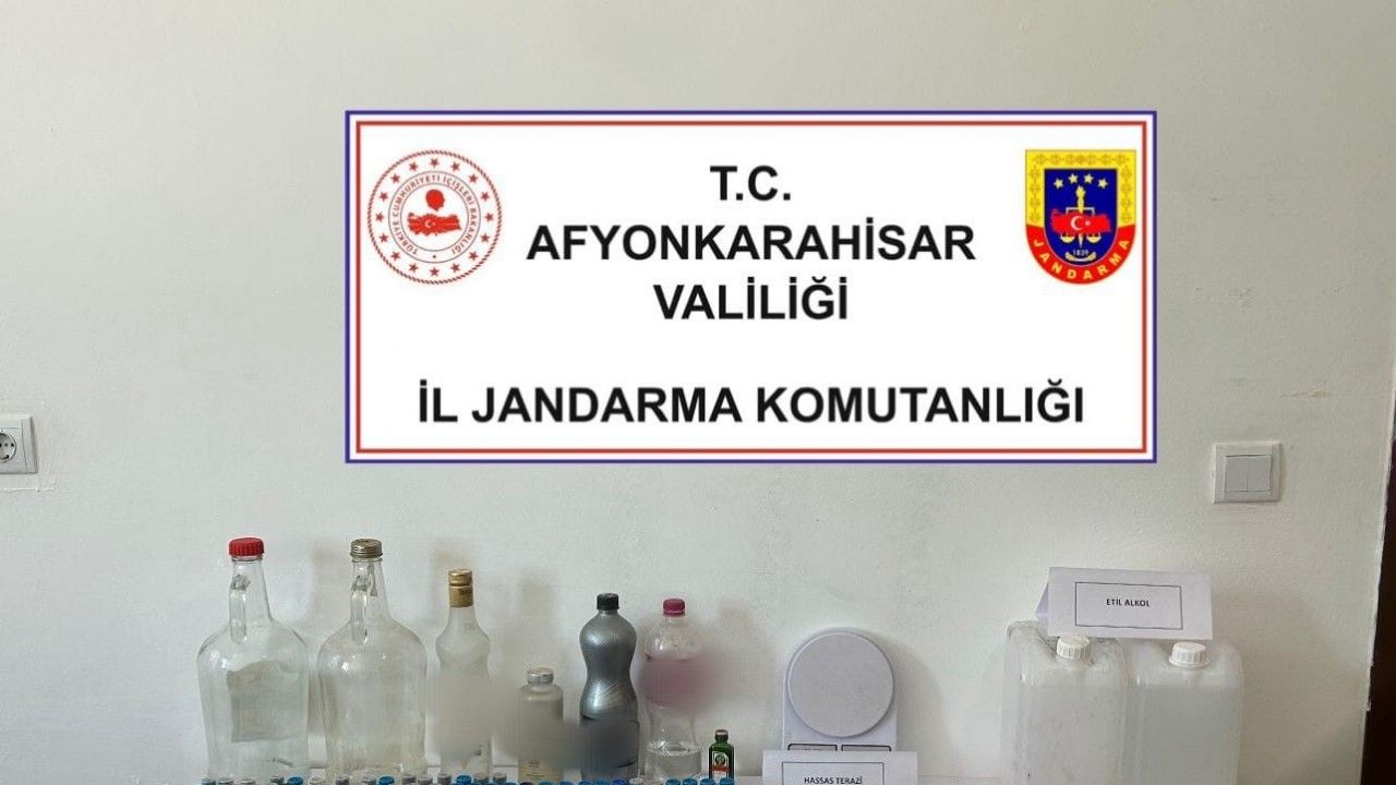 Afyonkarahisar İl Jandarma Komutanlığı ekipleri Başmakçı ilçesine bağlı Akkoyunlu köyünde düzenledikleri operasyonda sahte alkol üretimi yaptığı tespit edilen bir kişiyi gözaltına aldı.