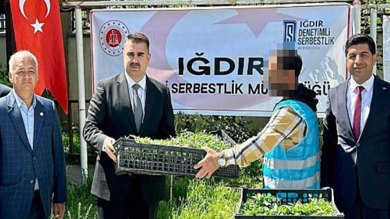 Iğdır Cumhuriyet Başsavcılığı Denetimli Serbestlik Müdürlüğü, sosyal sorumluluk bilinciyle "Toprağa Dokun, Hayata Tutun" projesini hayata geçirdi.