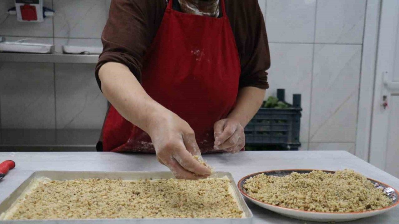 Malatya’nın Battalgazi ilçesinde kadınlar Kurban Bayramı öncesi yoğun tatlı siparişlerine yetişebilmek için hummalı bir çalışma yürütüyor. Geleneksel yöntemlerle hazırlanan el açması ev baklavaları ve kömbeler, bayram sofraları için hazır hale getiriliyor.